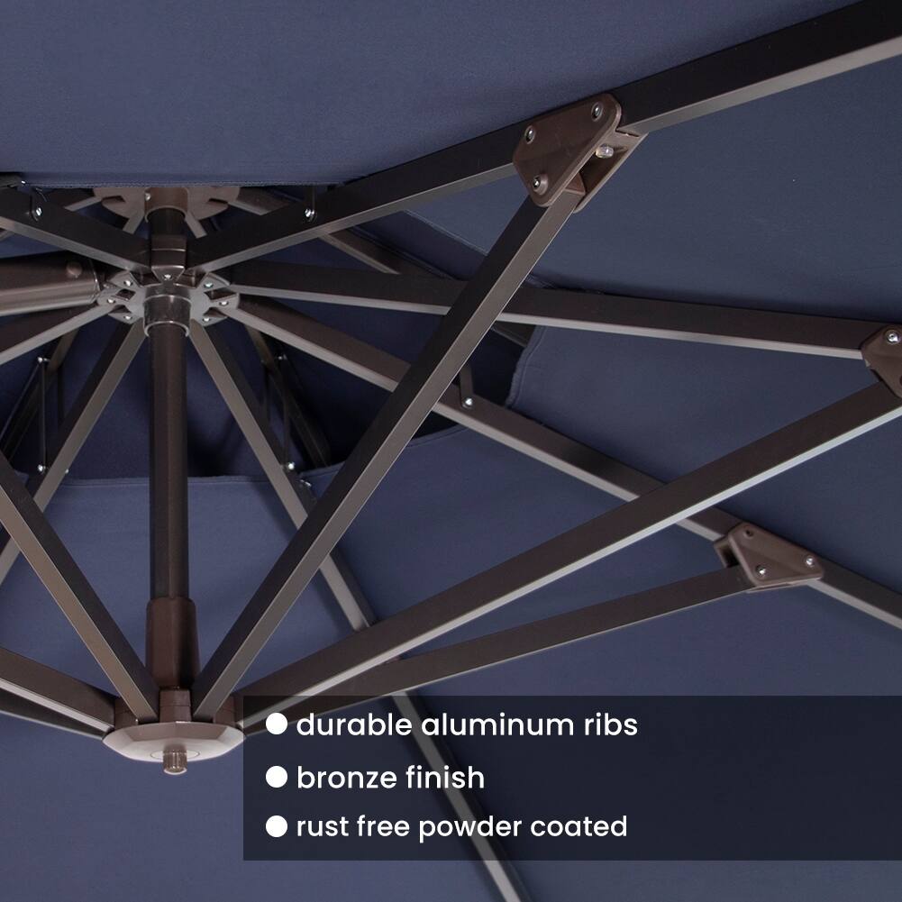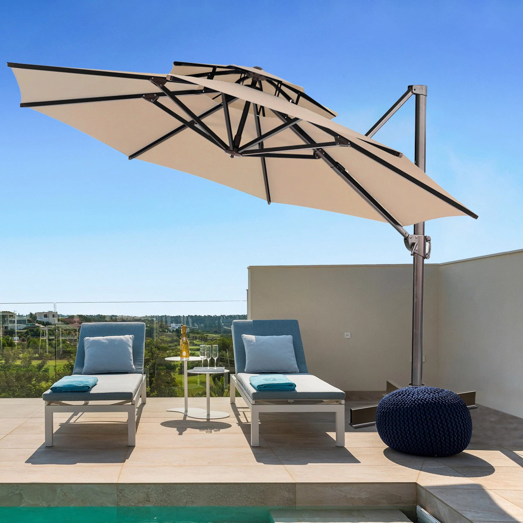 Using Crestlive Products 12 ft round patio garden double top offset umbrellas is a fantastic way to help you enjoy your outdoor room. You can move the pole to any outdoor spot you like with the unique design, without worrying about it getting in the way of dining or entertaining. This outdoor umbrella is exquisite and waterproof with 100% 250 g superior solution dyed polyester. It can provide 12 feet diameter of sun protection to shade a large dining table or conversation set. The UV protective and fade-resistant canopy is spread over 8 ribs with wind vent that allows for wind and air to be safely "vented" through your umbrella, and it also allows for hot air to escape out of the top. The lightweight durable aluminum pole can resist the most of things from the environment throws at it, and the classic bronze coating on the frames gives you a stylish touch feeling. It is easy to control the hand crank to adjust the shade to ensure you are covered. Add a new partner to make you happy journey, just take it home.