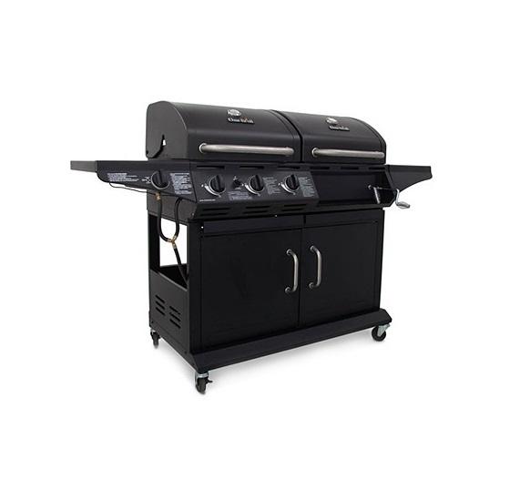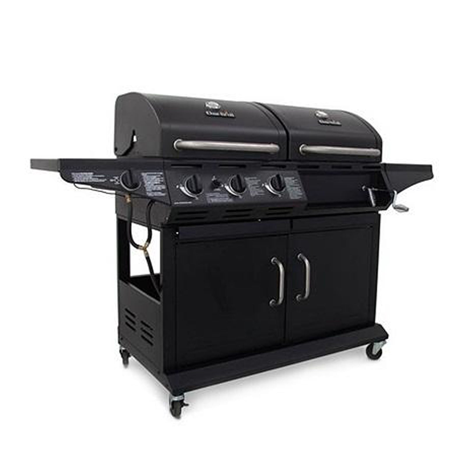 Combination charcoal and gas grill with 505 square inches of primary cooking area and black painted steel double doors; Assembly... اقرأ المزيد
