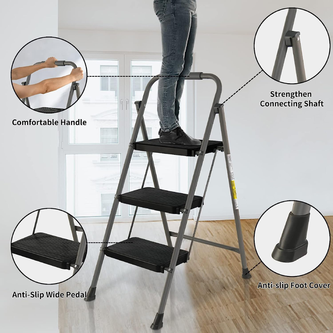 سلم 3 درجات قابل لطي مع مانع انزلاق