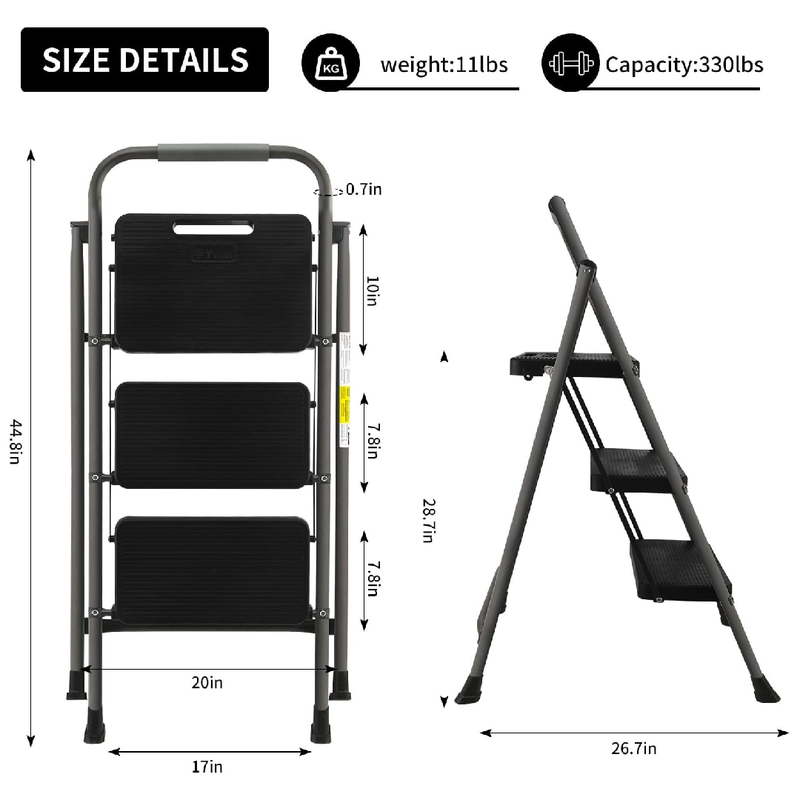 سلم 3 درجات قابل لطي مع مانع انزلاق وصف المنتج [مادة عالية الجودة] أبعاد الحجم المفتوح هي 44.8 إنش × 20... اقرأ المزيد