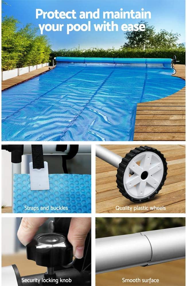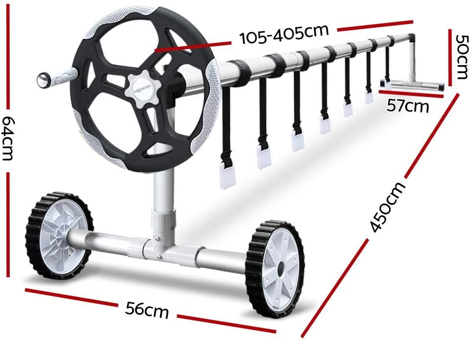 Made of sturdy aluminium construction with full adjustability, this pool roller is suitable for pool with a width between 1.05 - 4.05m. Equipped with premium anodized aluminium alloy stands with plastic wheels for maximum portability and convenience. With an exclusive non-slip spinning wheel design to roll up pool covers for easy operation. This pool roller will help to keep the pool clean at all times with little effort.