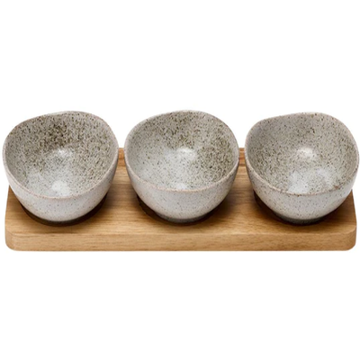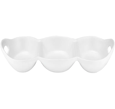Product Description Entertain in style with our Host range, which is designed to suit any home, featuring an array of soft natural colours. Host brings to the table a range of truly classic shapes with a modern matte glaze to make this a go to for years to come Neutral colours to suit all homesPerfect for entertaining3 sections allow you to serve multiple itemsGreat for chips, dip, sauces and antipastoEasy clean up Packaging Brand Sticker Size 42.4x15.4x7cm Fabrication Stoneware