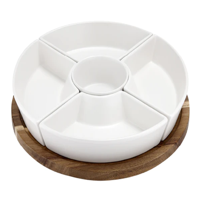 Product Description Made for every occasion, our Classica range is designed for easy entertaining year-round. No matter what you are serving, from chips and dip to something sweet, the range has a piece to help you serve with ease. In a gloss white, all items are dishwasher safe to make cleaning up a breeze. Product Information Packaging Colour Box Size 28.8x17x42cm Fabrication Porcelain/Metal/Wood