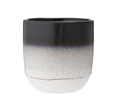 Product Description Make your coffee or tea at home feel a little more stylish with our café inspired tumblers. In a variety of glazes and colours there's a look to suit any style. A sandy coloured mug with black textured glaze this mug is a stylish addition to any collection. Materials: Stoneware Dimensions: 8.5x8.5x9cm