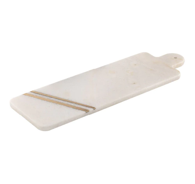 Product Description Present a table that will wow your guests featuring the stunning Tempa Emerson Long Rectangle Serving Board Champagne. Overflowing with luxury style, the Emerson Long Rectangle Serving Board Champagne from Tempa has been handcrafted for a truly unique and timeless look that will elevate your home aesthetic to the next level. Crafted from high-quality solid marble with a beautiful beige champagne colourway, each board features striking golden brass detailing for a true touch of decadence. With a food-safe lacquer to prevent stains, this versatile board is perfect for serving a variety of mouth-watering nibbles such as fresh canapes, Italian charcuterie, after-dinner cheese and crackers and more. Adorn your own table with the Tempa Emerson Long Rectangle Serving Board Champagne or gift it to a beloved friend or family member for a memorable gift they’ll cherish for years to come.