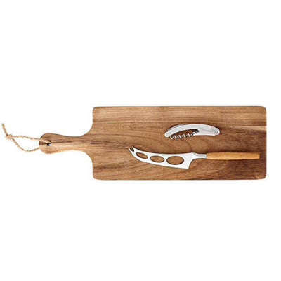 Product Description Tempa Fromagerie Cheese and Wine SetPerfect for the cheese and platter lover in your life, our Fromagerie range has been thoughtfully designed for sharing. Serve your favourite selection of cheese, crackers, fruits or appetisers and easily impress your guests. Classic acacia serving board, ideal for entertainers Large surface area to fit all your platter essentials Features a handle with a loop for hanging Includes a cheese knife and wine bottle opener All-in-one platter set Construction: Acacia Dimensions Approx: 46 x 15 x 1.5 cm Includes:1x Cheese Board1x Chees Knife1x Corkscrew