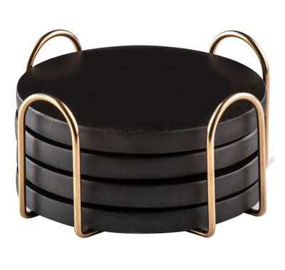 Product Description With sleek finishes and modern shapes, this collection is the ideal serveware for entertaining. Whether you're serving up a perfectly cooked steak, or buying a gift, Orson is one to impress. The collection is made from Acacia and features metal detailing, making this a range to fit into any home. Orson Coaster SetIncludes 4 matching coasters with standMade from solid Acacia WoodCoasters have been finished with a food safe lacquer for added protectionIncludes rubber feet to stop slippingAvailable in Black or Natural