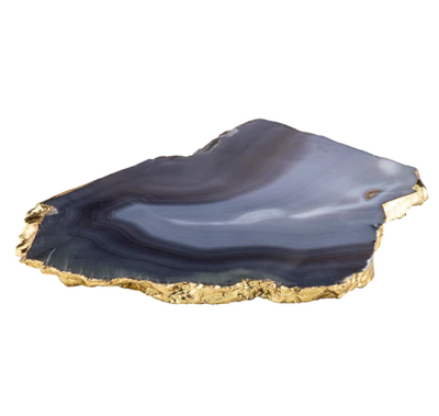 Product Description Made for those who love to entertain, Allira is the ultimate serveware collection. Made from naturally cut agate with gold detailing, each piece is truly unique. Whether you're looking for a home decor piece, or the perfect serveware, Allira is sure to impress. Allira Agate PlatterMade from naturally cut agate with a gold detailed edgeEach piece is totally unique and will differ in shape, colour and sizeFeatures clear feet on the bottom to avoid marking surfacesFinished with a food safe coatingComes in gift box packagingThe small is approx. 22x15cmLarge is approx. 33x22cmAvailable in Sapphire, Rose, Green, Moonstone and Amethyst