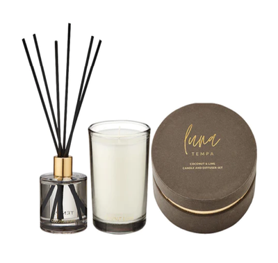 Product Description Introducing the addition of our Luna Gift Set range. Available in 6 different scents, there is a gift to suit any fragrance preference. Our soy wax blended candles leave your home smelling beautiful for hours on end. Care for your candles and increase their longevity with the accompanying snuffer and wick trimmer. Our Reed Diffusers are a great way of gently fragrancing a room and will bring weeks of enjoyment. Each gift set comes in an ultra soft velvet gift box, which will be sure to delight anyone who receives it. Luna's 3 Piece Gift SetEach set comes with 1x 110g Soy Wax Blend Candle1x 80ml Reed Diffuser, 1x 100ml Room SprayCandles use a lead free cotton wick for a high quality burnRoom sprays offer an effortless way of fragrancing every room you walk intoAvailable in 6 different scents; Midnight, Peach Orchard, Vanilla Bean, Winter SpiceSalted Caramel and Coconut & LimeComes in a luxe velvet gift box