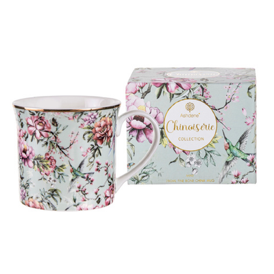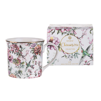 Product Description Delicate and sweet, the Chinoiserie collection encapsulates the classic design style that originated in Europe with East-Asian influences. Hummingbirds and butterflies flutter amongst the blooming florals in the featured artwork, accented with touches of gold. These pieces are wonderful for creating a pretty, pastel teaware setting or elevating your everyday collection. Product Information Packaging Colour Box Size 20x10x13.5cm Fabrication Fine Bone China/Stainless Steel Capacity 600