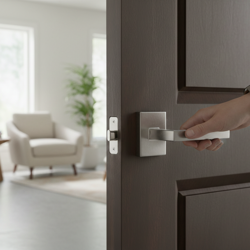 مقابض أبواب على وردة مربعة (طراز FIXA) بمقاس 50×50 مم، مع أغطية لأسطوانة المفتاح (Cylinder)، مزودة ببراغي تثبيت نافذة وبراغي... اقرأ المزيد