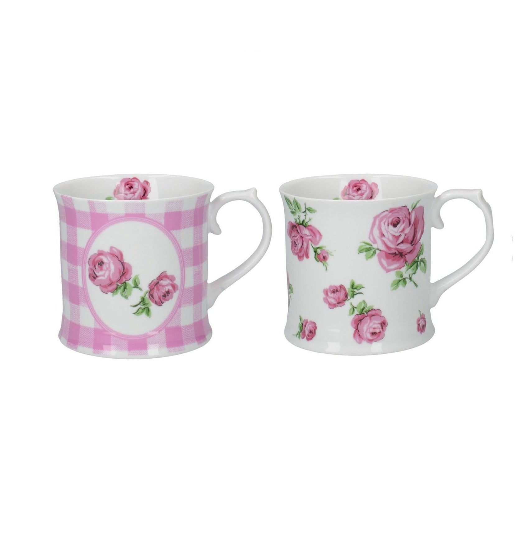 KATIE ALICE VINTAGE ROSES SET OF 2 TANKARD MUGS PINK