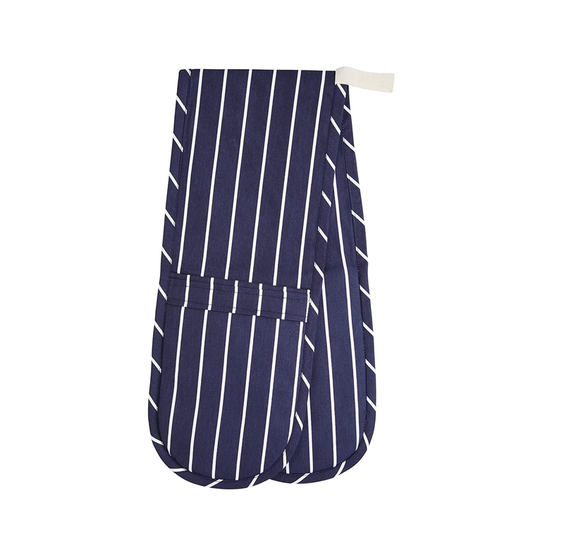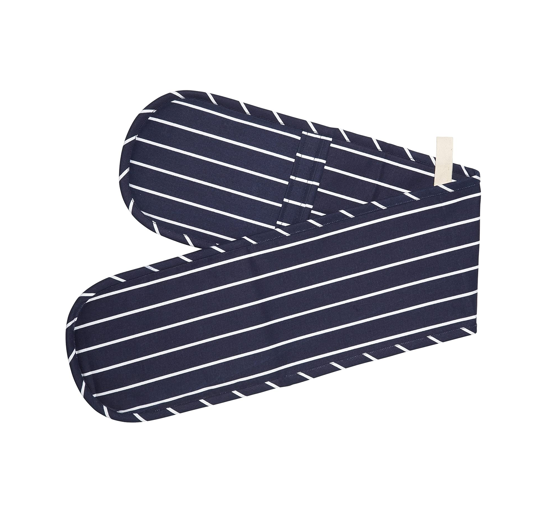 KITCHENCRAFT DOUBLE OVEN GLOVES WITH 'BUTCHER'S STRIPE' DESIGN, COTTON/POLYESTER, NAVY BLUE/WHITE, 87 X 18.5 CM